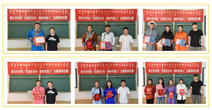 选手们或激昂慷慨,或深情诚挚,或娓妮道来,用最诚挚的语言来歌颂中国共产党。经过激烈的竞争,蒙语组中阿其拉夺得第一名,新吉力吐、嘎日玛获得第二名,德格金、伊如汗、哈那格拉获得第三名;汉语组中刘苏日娜夺得第一名,孟淑香、芳芳获得第二名,包阿茹娜、闫艳、王玉珍、谢文灵获得第三名。